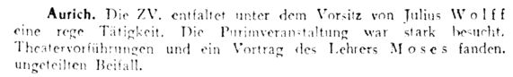 in "Jüdische Rundschau" vom 29. März 1938: "Aurich. Die ZV. entfaltet