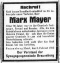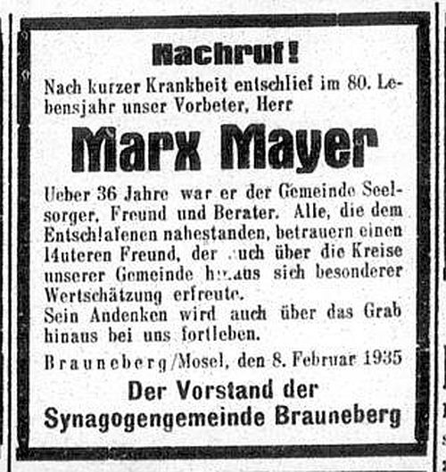 inzwischen 36 Jahren - Marx Mayer (gest. 1935, siehe Bericht unten).