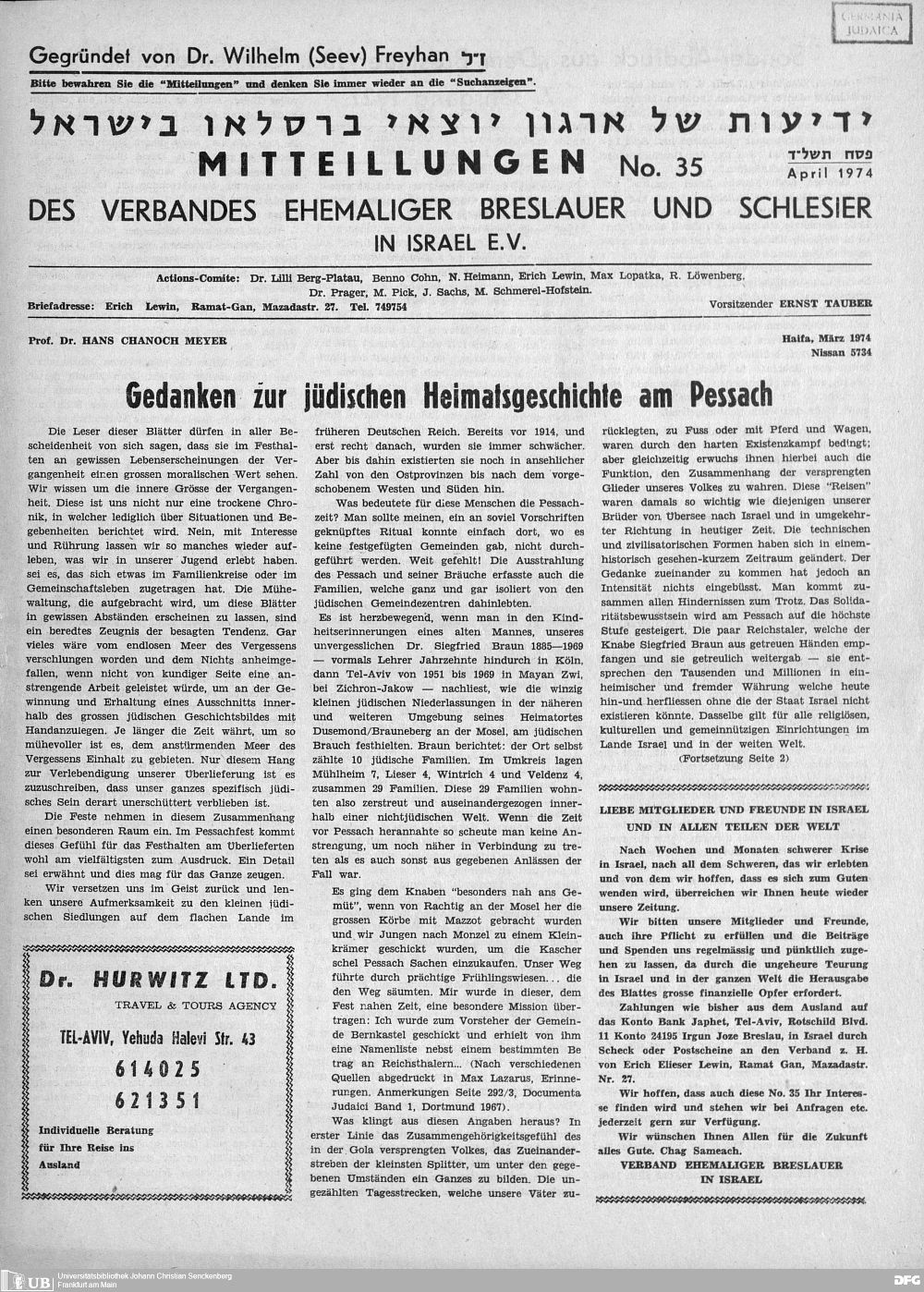 wird um 1894/97 S. Mayer genannt (Statist. Jahrbuch des Deutsch-Israelitischen