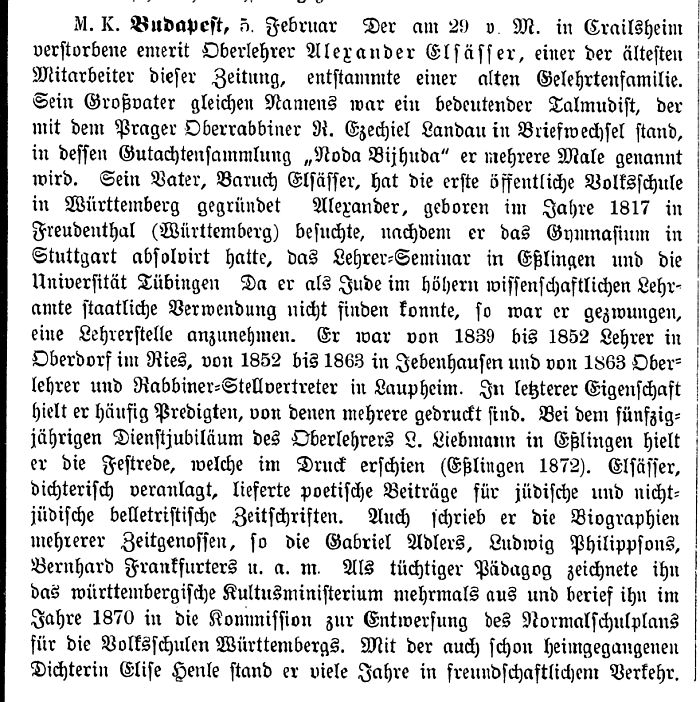 im "Israelitischen Familienblatt" vom 9. Dezember 1920: "Crailsheim.