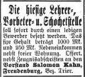 Religionslehrer angestellt, der zugleich als Vorbeter und Schochet tätig war (siehe Ausschreibungen der Stelle unten).