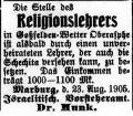 im "Frankfurter Israelitischen Familienblatt" vom 22. Januar 1904: "Vakanzen.