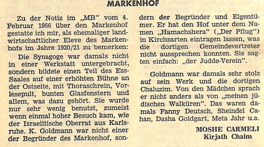 dem Markenhof gegeben. Ruppin prägte für sie den Namen 'Kewuzat Markenhof'
