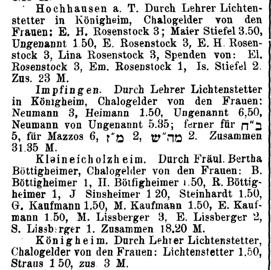 genannt: um 1876 D. Sinsheimer, um 1890 Hermann Lissberger, um 1909 Simon