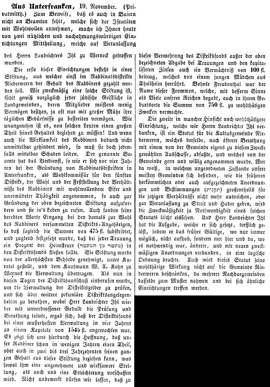 Niederwerrn wurde 1840 Sitz eines Distriktsrabbinates. Rabbiner Mayer