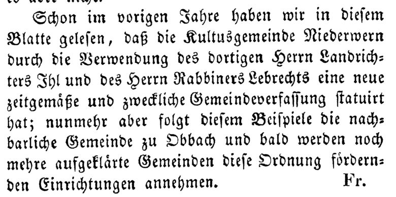 Lebrecht war 1840 zunächst zum unterfränkischer Distriktsrabbiner für 2.767 Juden mit