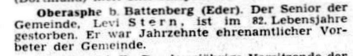 der Gemeinde war Levy Stern (genannt 1903/04 und in den folgenden Jahren).