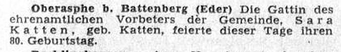 jüdischen Familien und des jüdischen Lebens in Oberasphe (siehe