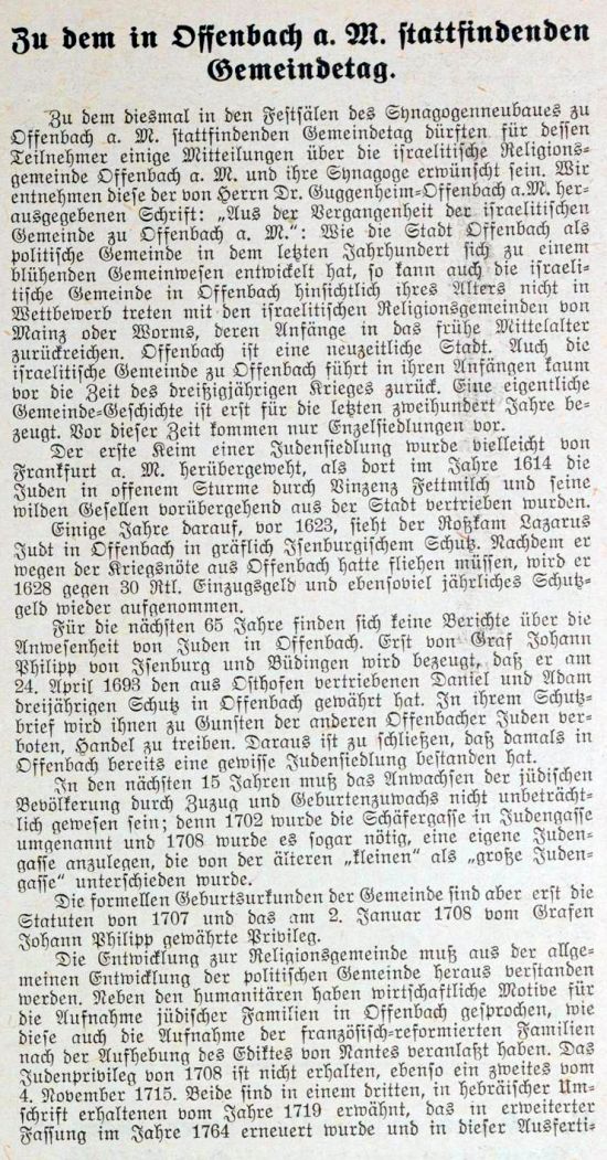 israelitischen Gemeinde zu Offenbach am Main. Offenbach 1916. |