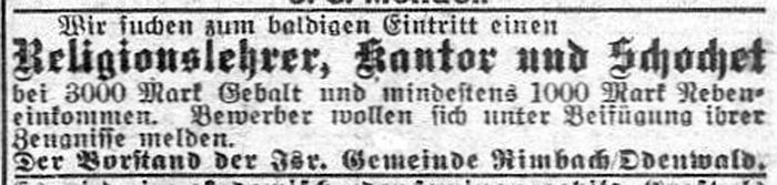 eigenen jüdischen Lehrer mehr in Rimbach.