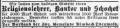 der zugleich als Vorbeter und Schächter tätig war. Stellenwechsel fand in