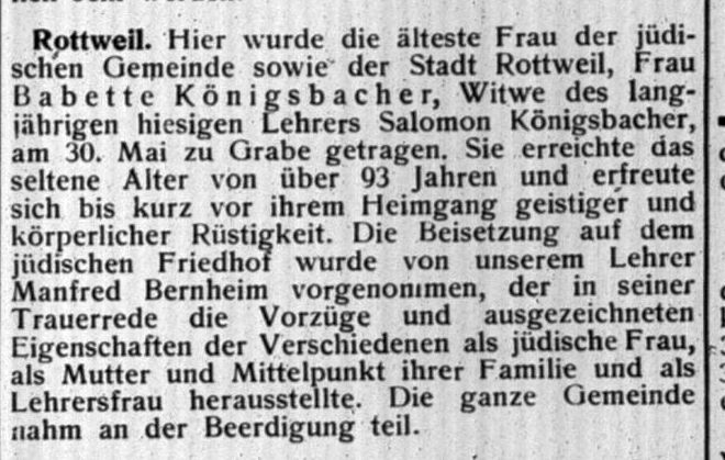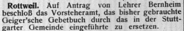 als Filialgemeinde an. Erst 1924 wurde eine selbständige jüdische Gemeinde in Rottweil