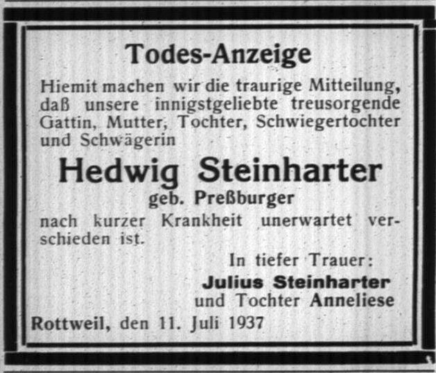 aus Landstuhl; beide haben am 27. Juli 1938 in Rottweil geheiratet) sind nach den Angaben von Yad Vashem