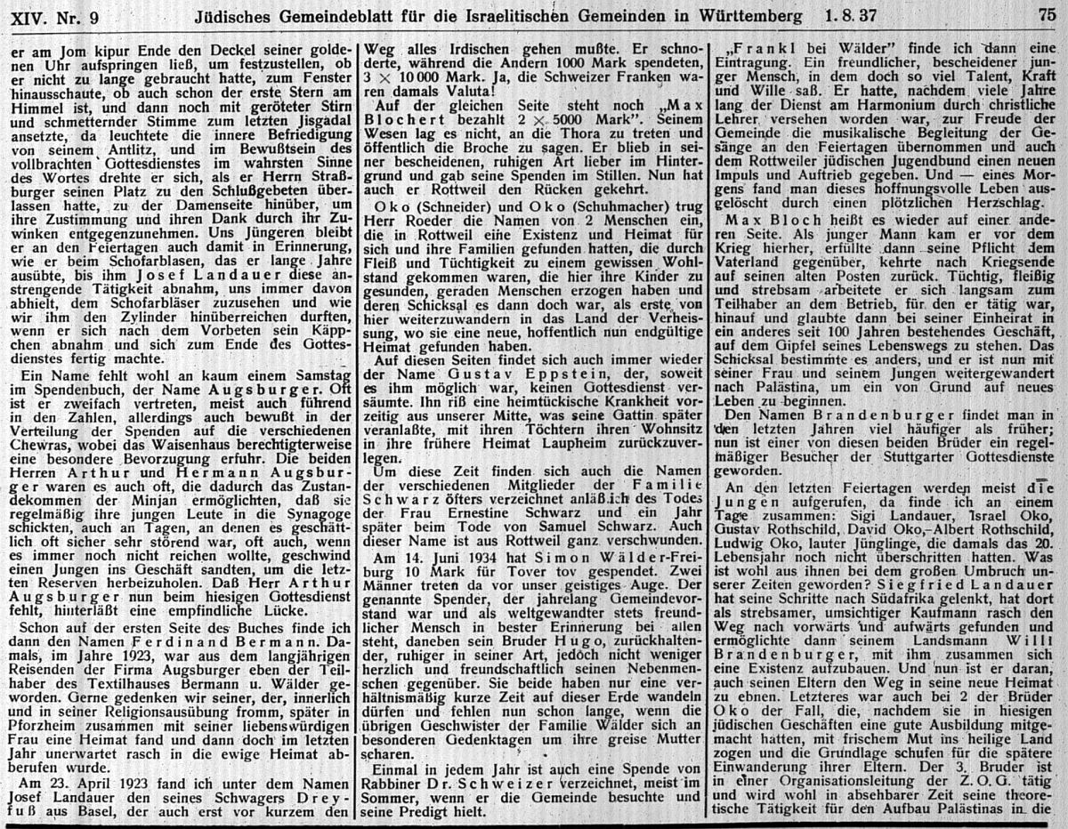 danach noch die Lehrer Manfred Bernheim (1933 bis 1934) und Moritz Warscher (ab 1934 bis 1938). Die Gemeinde gehörte zum