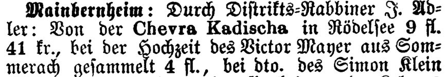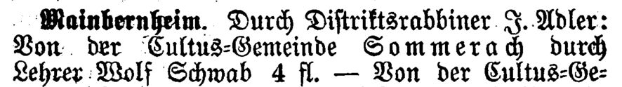 in der Zeitschrift "Der Israelit" vom 1865: ""Sommerach. Durch