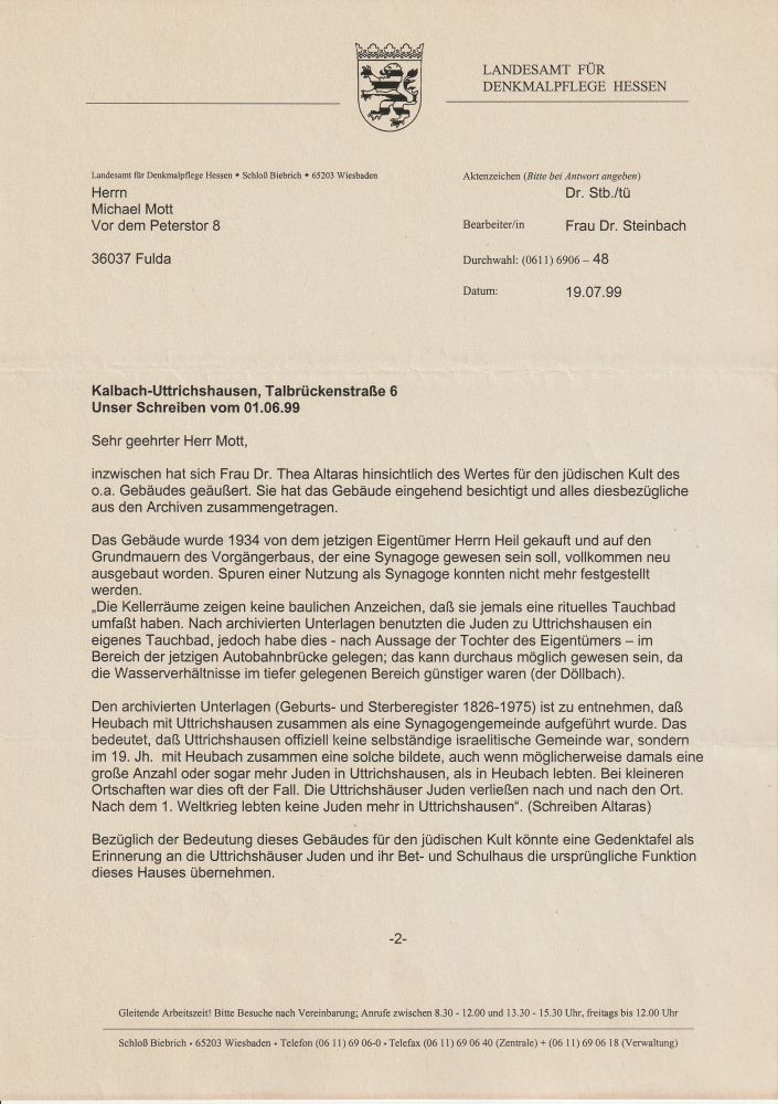 jüdischer Kultusbau in Uttrichshausen war schon seit dem Ersten Weltkrieg