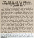 Artikel im "Mitteilungsblatt für die israelitischen Gemeinden Hessens" von 1931 Nr. 3 S. 5: "Wie sah es mit dem jüdischen Religionsunterricht in Hessen vor 70 Jahren aus?