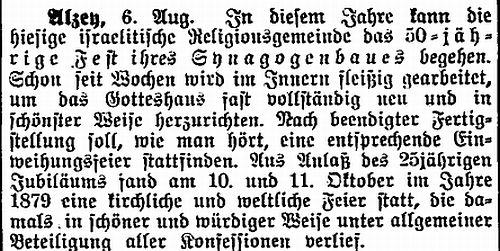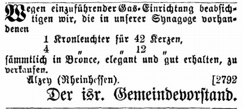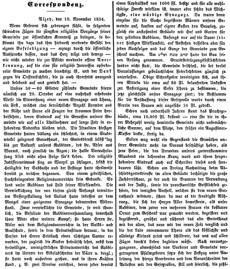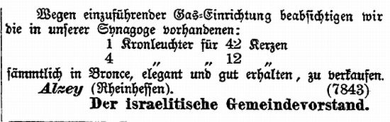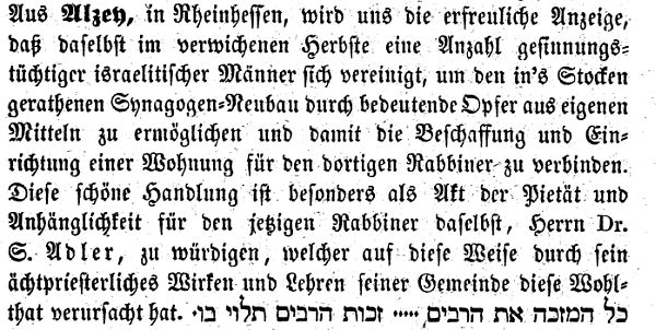 Alzey war von 1842 bis 1933 Rabbinatssitz (unter den Rabbinern: bis 1857