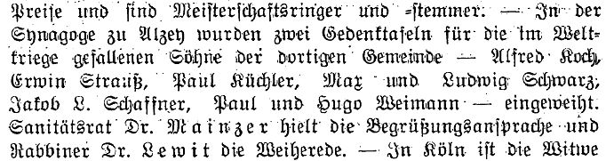 12.9.1895 in Alzey, gef. 1.11.1916), Paul Weinmann (geb. 3.3.1898 in Alzey, gef.