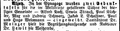 Im Ersten Weltkrieg fielen aus der jüdischen Gemeinde Offz.St. Alfred