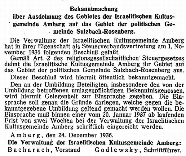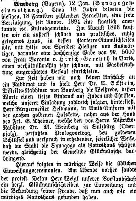 Rat der Stadt Amberg (Oberpfalz) hat den israelitischen