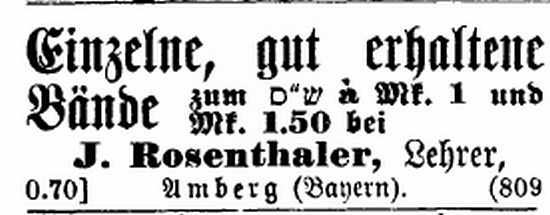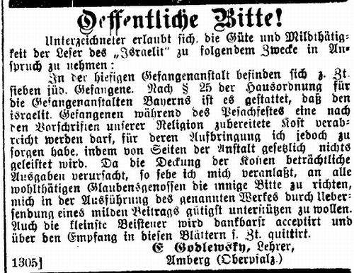 Anzeige in der "Allgemeinen Zeitung des Judentums"