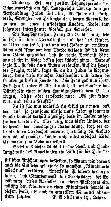 weiß machen wollen: 'Die Oberpfalz sei besonders von Juden geplagt, sie