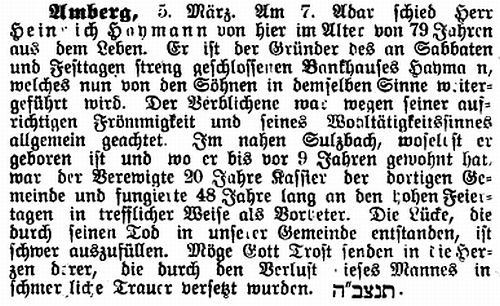 In Amberg bestand eine jüdische Gemeinde bereits im Mittelalter.