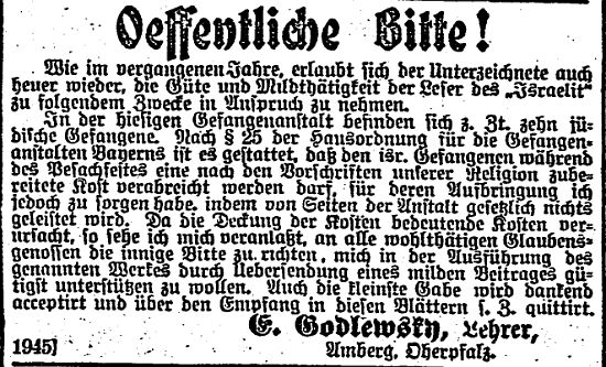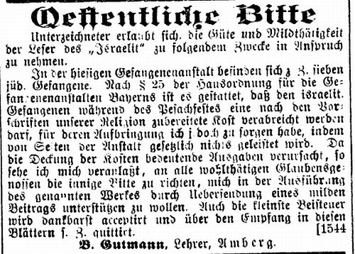 einem "offenen Schreiben" setzte sich der Sulzbacher Rabbiner