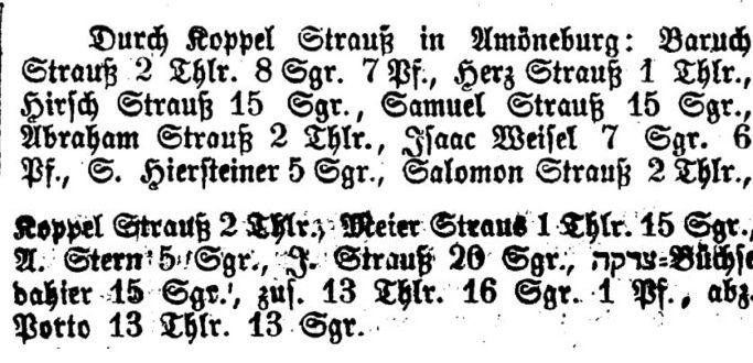 Von den Gemeindevorstehern werden genannt: um 1860 Salomon Strauß, um