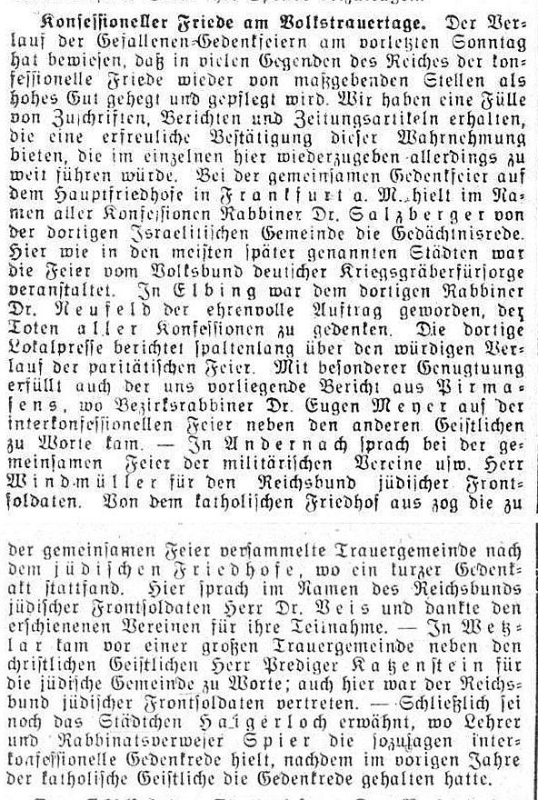in der "CV-Zeitung" (Zeitschrift des "Centralvereins") vom 15. Februar 1923: