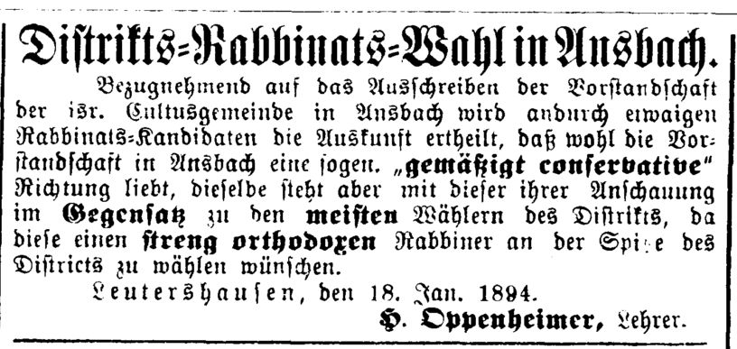 Dr. Pinchas Kohn wurde zum neuen Rabbiner in Ansbach gewählt (1894)