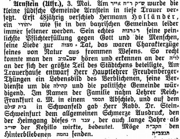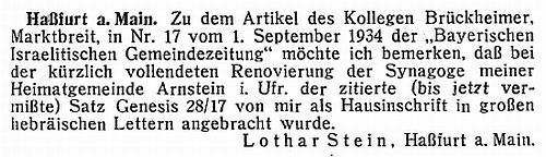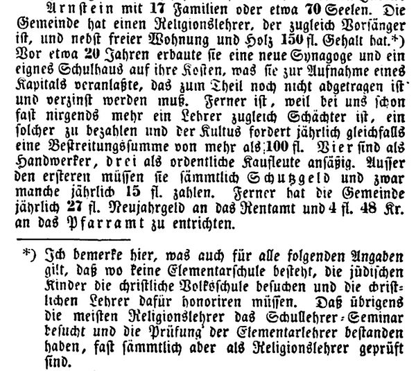 es im damaligen Amt Arnstein nur in Arnstein selbst jüdische Einwohner. Die jüdischen