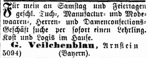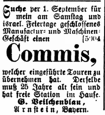 (siehe unten stehende Anzeigen jüdischer Geschäfte am Ende des 19.