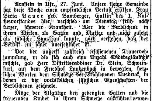 Repräsentanz war Salomon Bauer (zum Tod seiner Frau Berta geb. Bamberger
