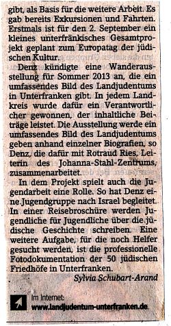 18-20; Foto zweite Fotozeile links und Mitte: Jürgen Hanke, Kronach; rechts: aus Artikel zu Arnstein bei hagalil.com s.u.)