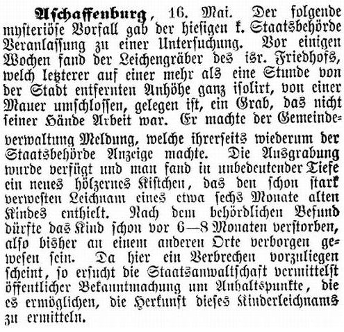 in der Zeitschrift "Der Israelit" vom 1. Juni 1881: "Aschaffenburg,