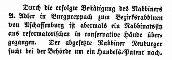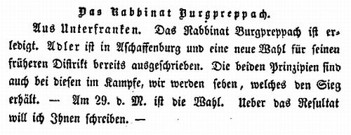 Nachricht entnehmen, dass es damals offenbar noch keinen Rabbiner in