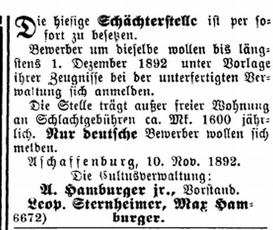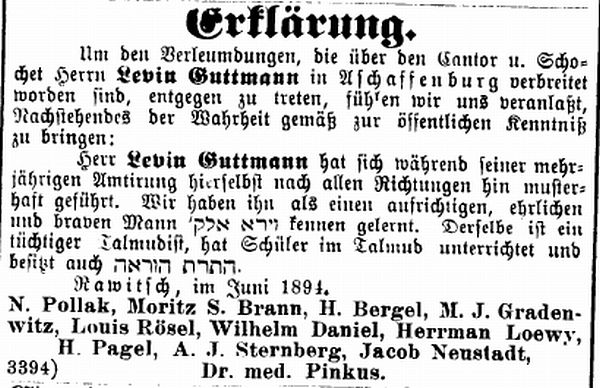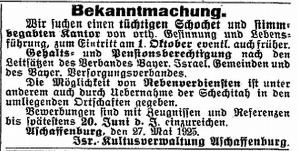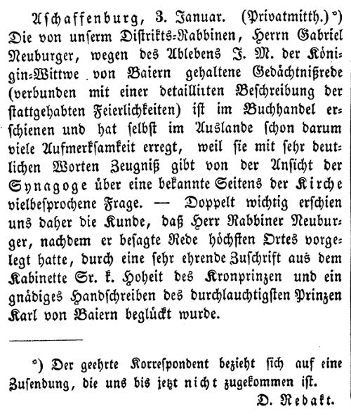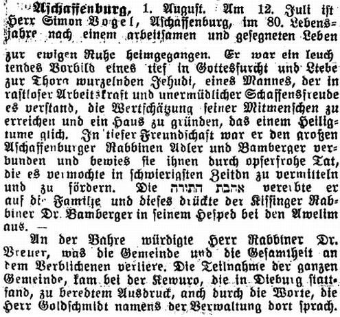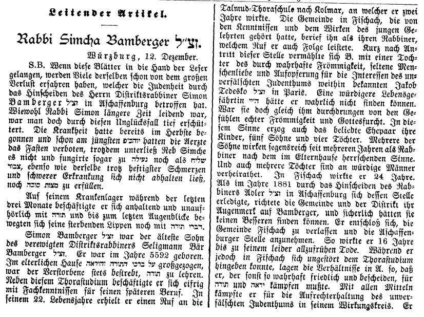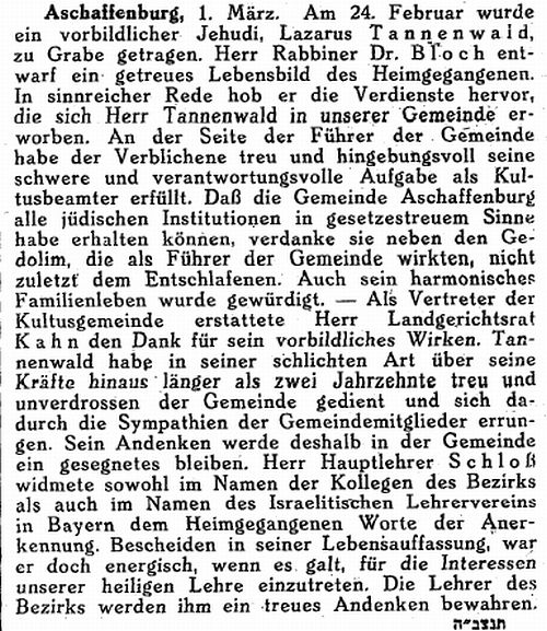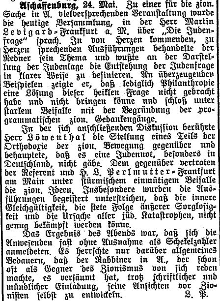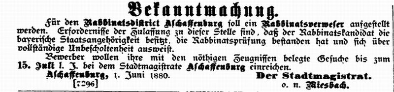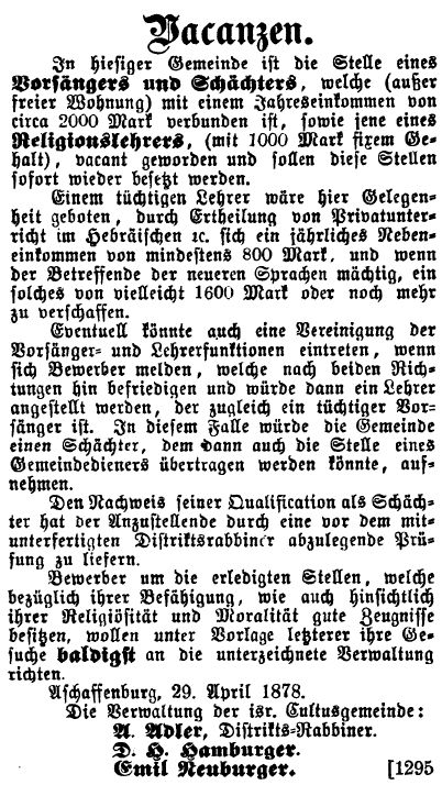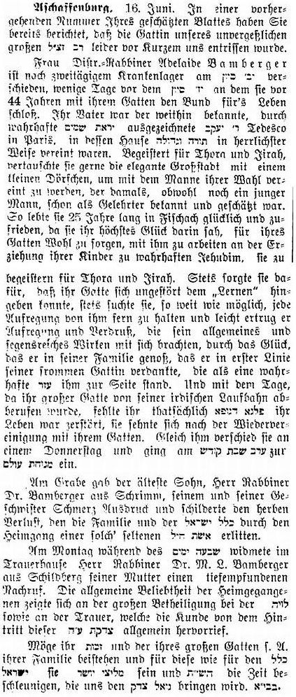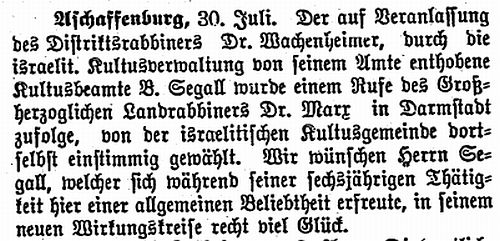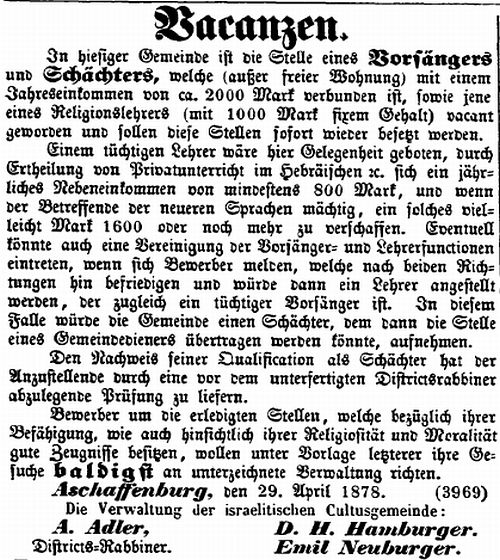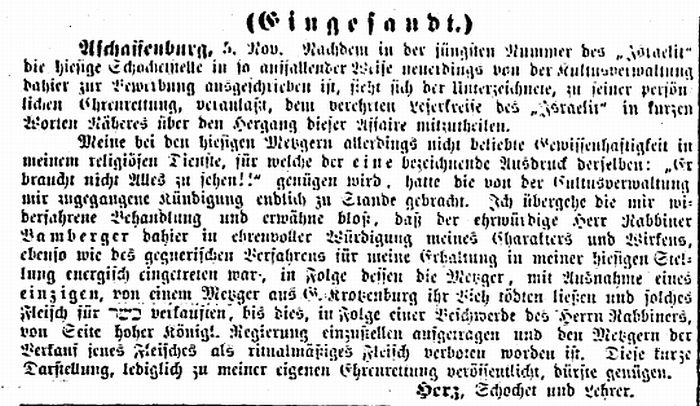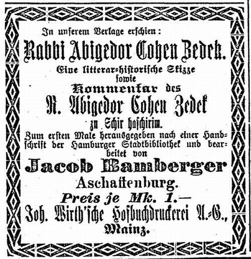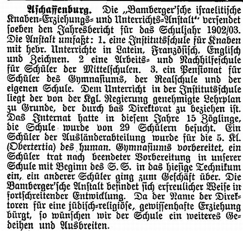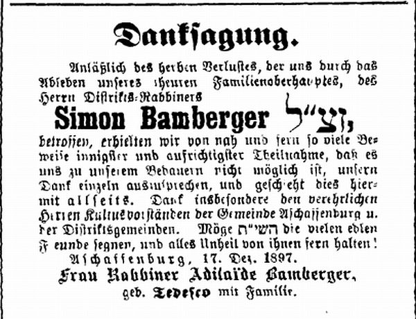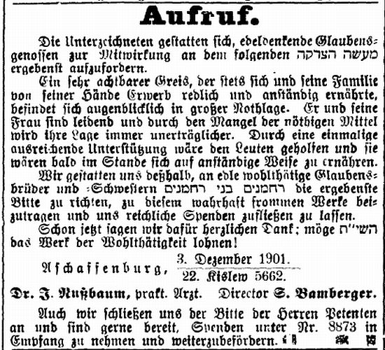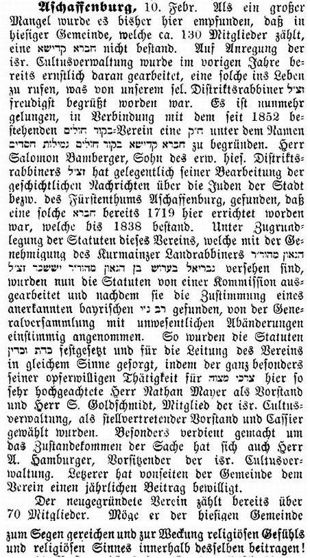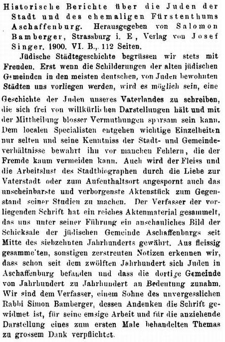 Aschaffenburg, herausgegeben von Salomon Bamberger.' Bamberger trug
