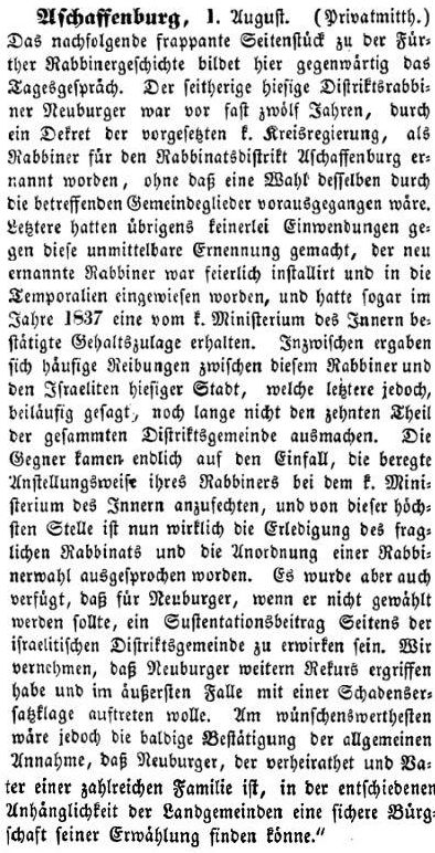 über die Juden der Stadt und des ehemaligen Fürstentums Aschaffenburg.