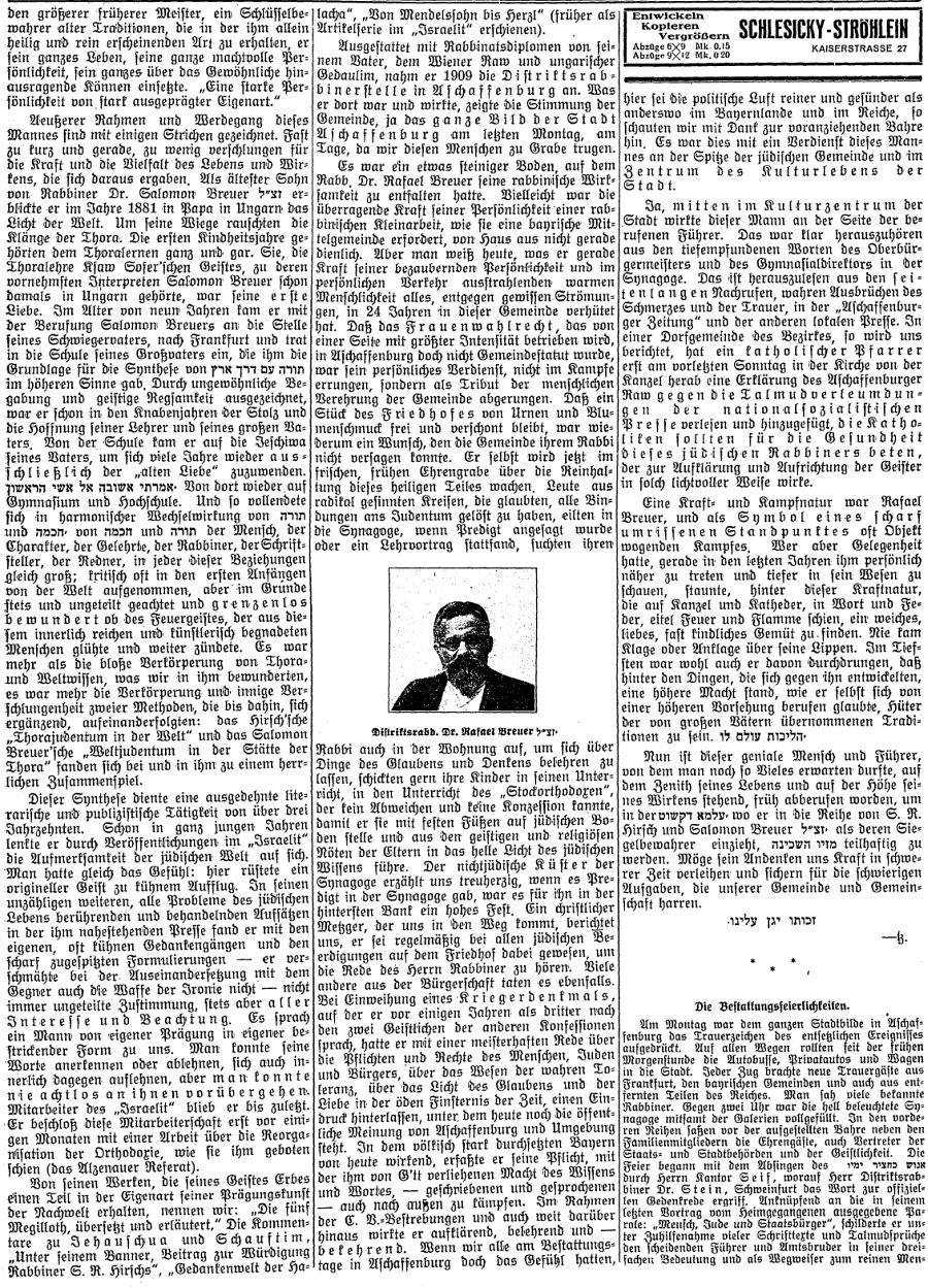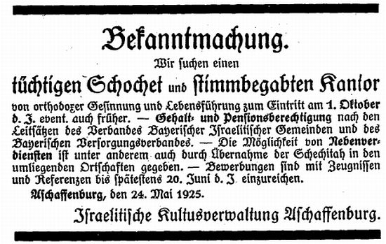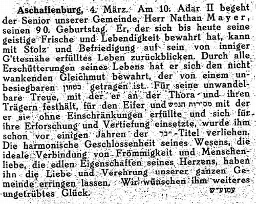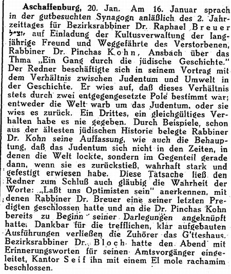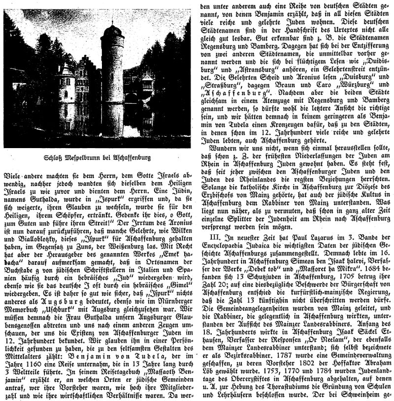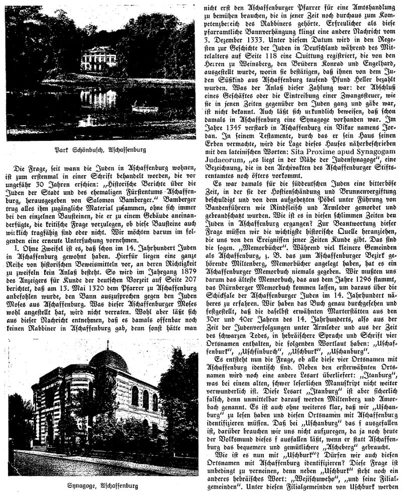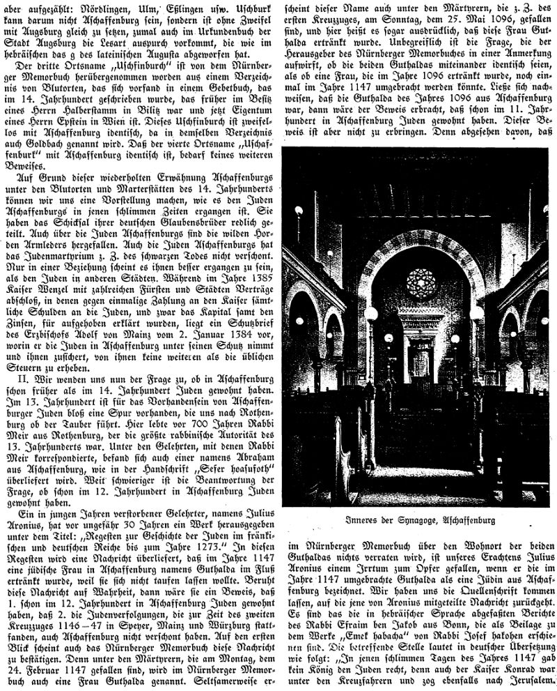 zur Geschichte der Juden in Aschaffenburg (1929)