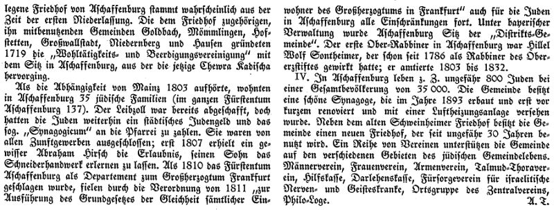 "Zur Geschichte der Juden in Aschaffenburg.