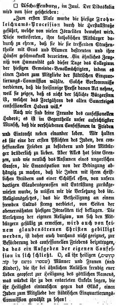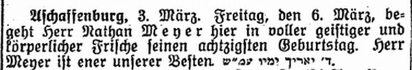 Beiträgen zur jüdischen Geschichte in Aschaffenburg wurden in jüdischen Periodika