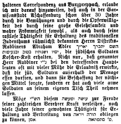 in der Zeitschrift "Der Israelit" vom 5. März 1900: "Historische Berichte