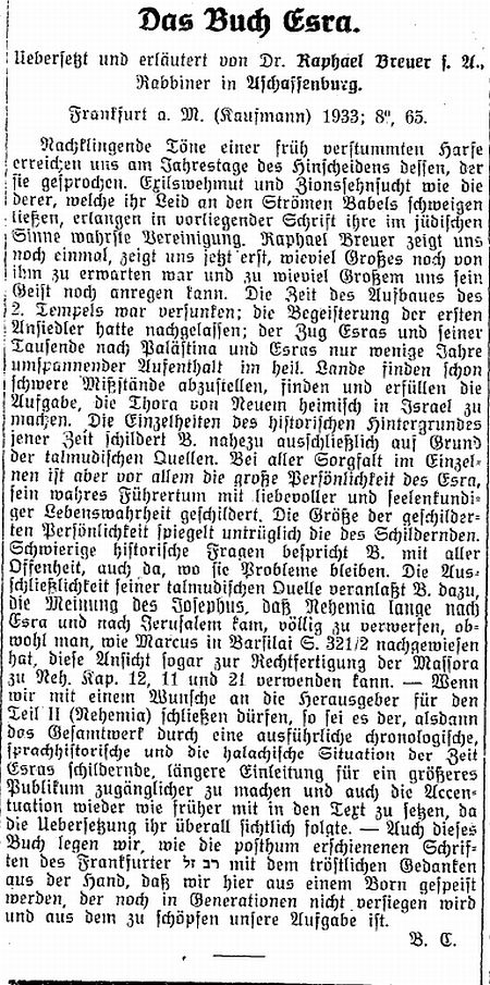 in der Zeitschrift "Der Israelit" vom 4. April 1935: "Die
