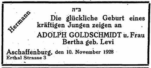 Goldschmidt und Frau Bertha geb. Levi.
