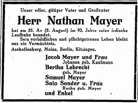 Jacob Mayer und Frau Johanna geb. Kaufmann Bertha Lebrecht
