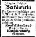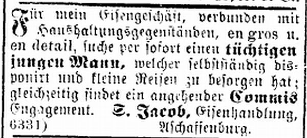 Anzeige in der Zeitschrift "Der Israelit" vom
