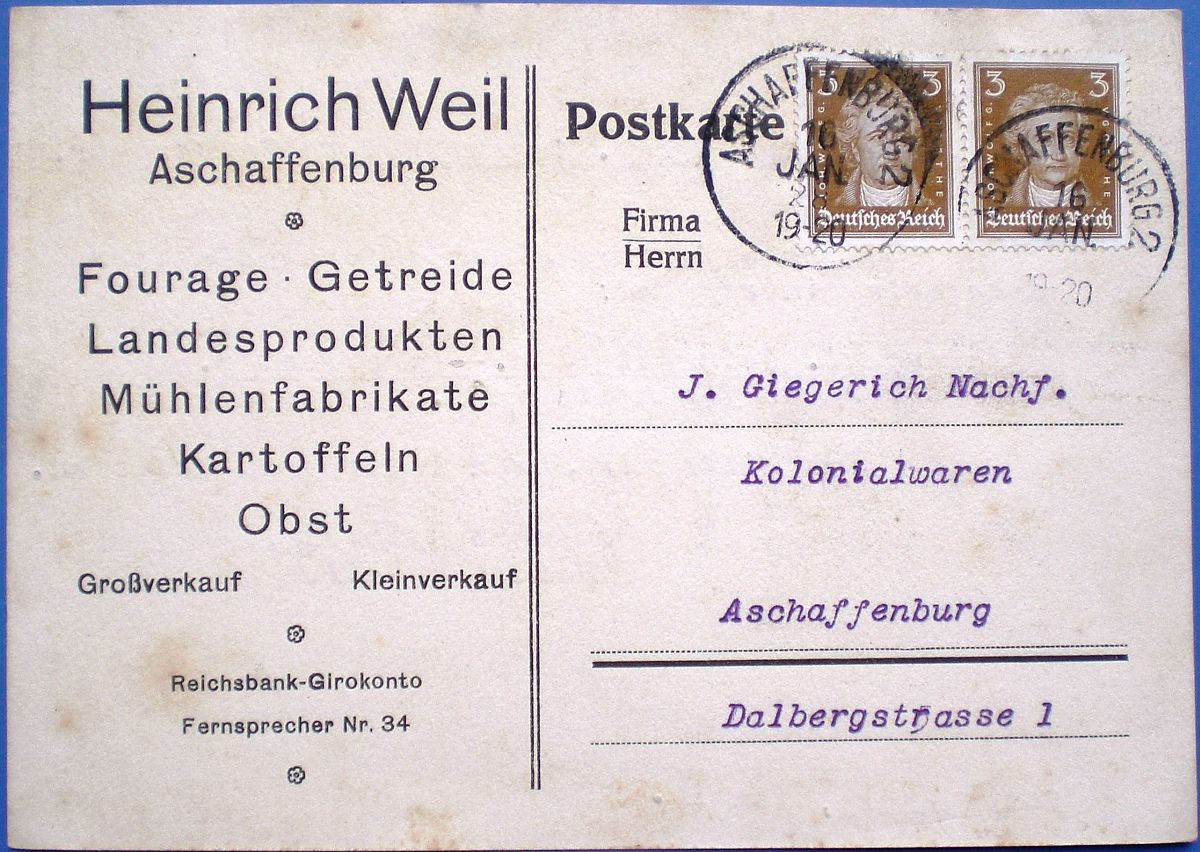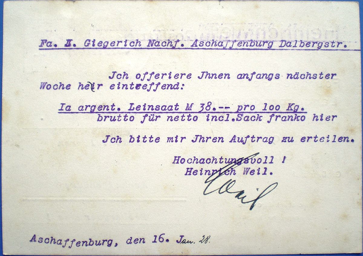 Aschaffenburg, den 10. November 1928. Erthal-Strasse 3." |