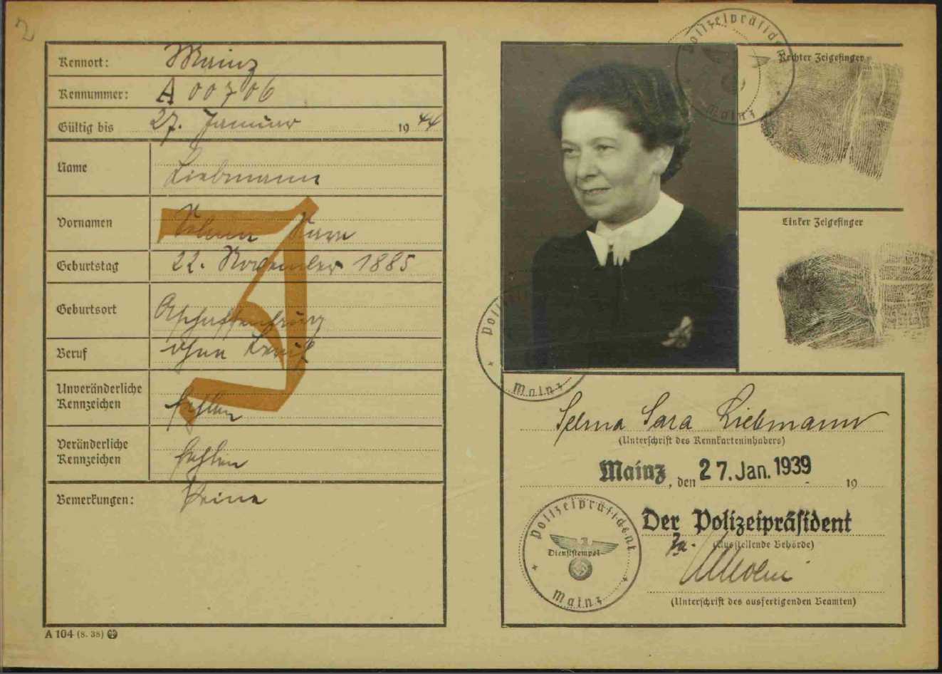 Kennkarten, Mainz 1939" http://www.uni-heidelberg.de/institute/sonst/aj/STANDREG/FFM1/117-152.htm.